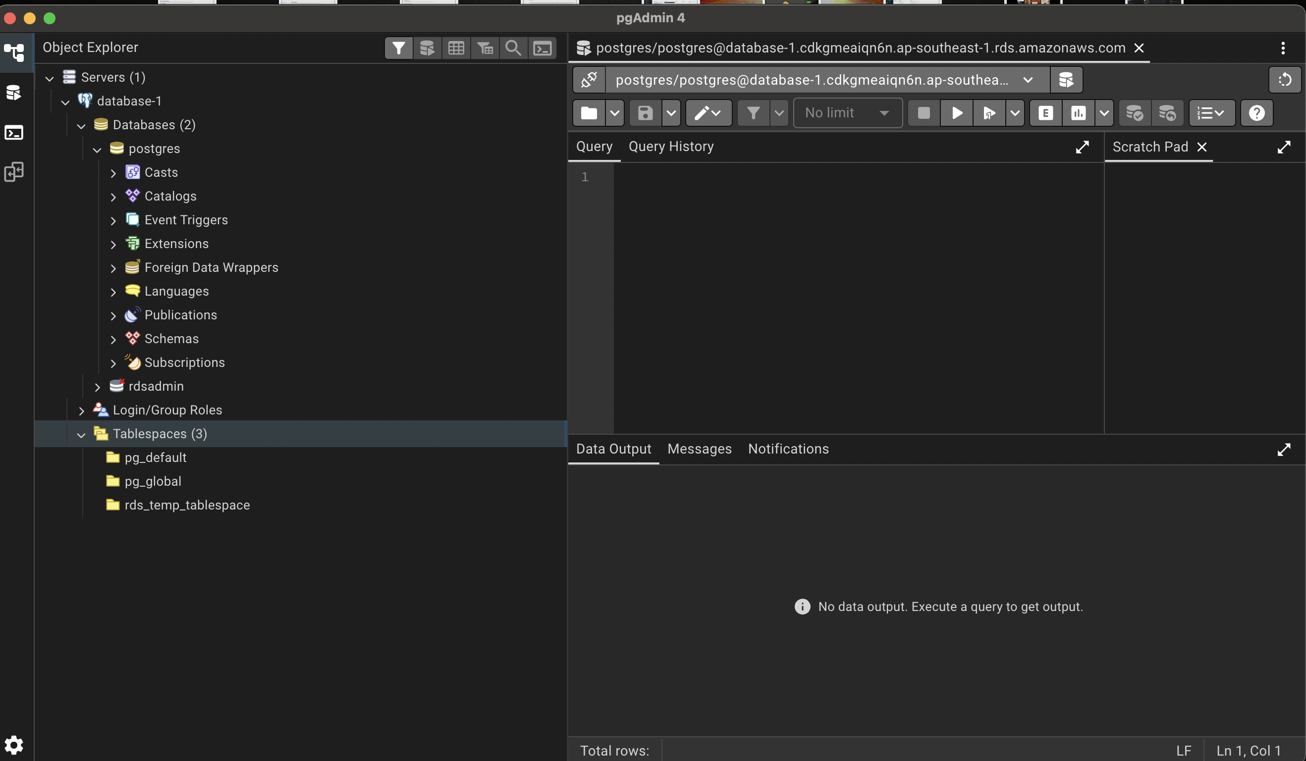 psql "postgresql://postgres:YourMasterPasswordHere@database-1.cdkgmeaiqn6n.ap-southeast-1.rds.amazonaws.com:5432/postgres"