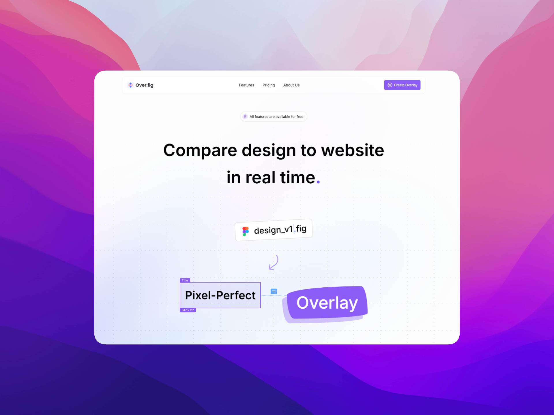 Overfig은 Figma 디자인을 실시간 웹사이트 위에 직접 오버레이할 수 있게 해 주는 무료 Chrome 확장 프로그램입니다. 탭을 전환하거나 세부 사항을 추측할 필요 없이 디자인과 코드를 실시간으로 비교할 수 있습니다.