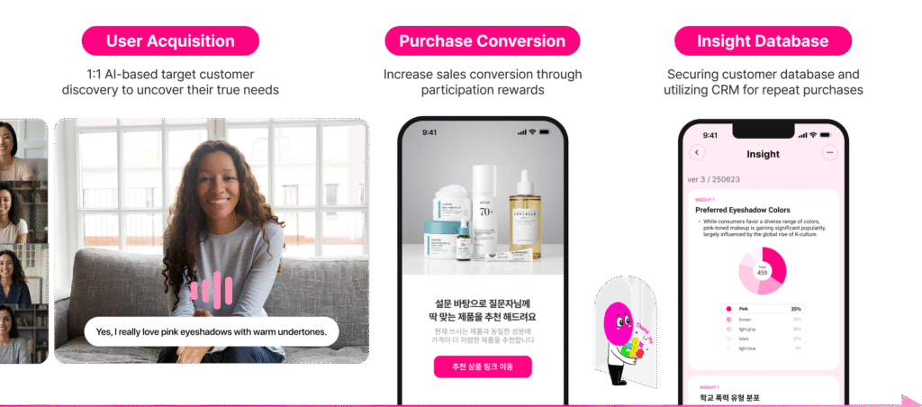 - 기존 설문조사·리서치 대비 1~2일 내 결과 도출, 건당 수만 원 수준의 비용 구조