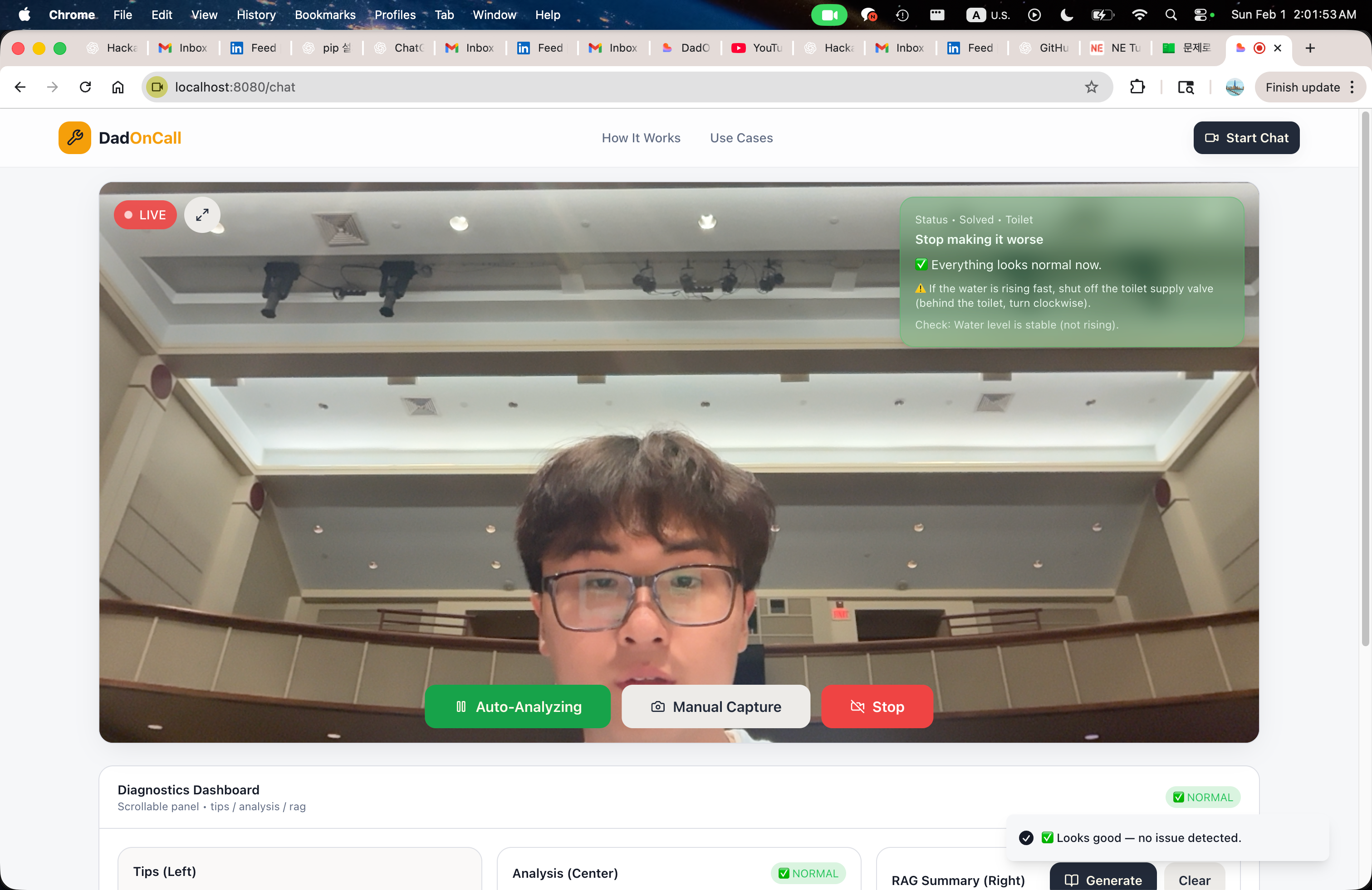 HandyDaddy는 비전, 구조화된 추론, 검색‑증강 생성(RAG)을 결합하여 까다로운 가정 수리 문제를 관리 가능한 가이드형 경험으로 전환하는 방식을 보여줍니다—마치 영상 통화로 지식이 풍부한 아빠와 함께하는 것과 같습니다.