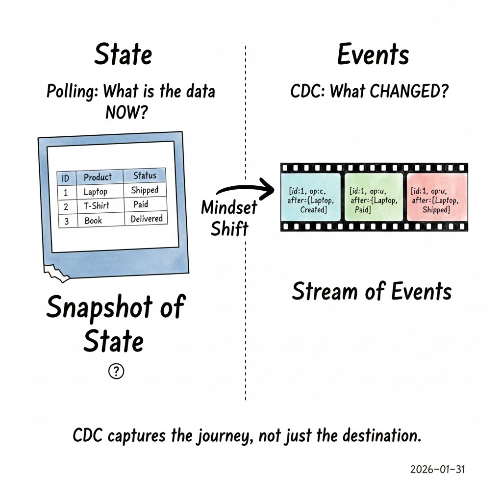Change Data Capture shifts how you think about data — from snapshots to events.